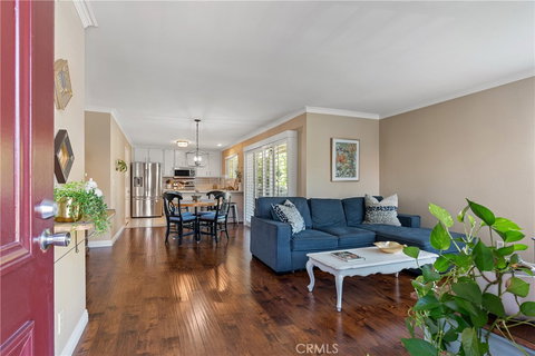 This beautifully updated two-bedroom, two-bath, turn-key condo is just what you've been looking for! With great flow for entertaining this open and airy second-story, corner unit is filled with natural light and offers panoramic views of the mountains from the living room and balcony off the dining area. The rich wood-like floors run throughout the home for seamless flow. Among the many tasteful updates over the last few years are crown molding and new baseboards throughout, plantation shuttered sliding door, new stainless steel appliances in the kitchen, new washer and dryer, new vanities in the bathrooms, along with new lighting throughout and new hardware on all of the doors and cabinets. The spacious primary bedroom suite offers access to a second balcony. Next to the walk-in linen storage closet is the conveniently located laundry area leading to the large second bedroom and bathroom. The 2-car, detached garage is roomy with extra storage. The grounds of this gated community are beautifully landscaped with a sparkling pool and spa. With easy access to the 210 and 605 Freeways this fabulous condo is conveniently located near the City of Hope, California School of the Arts, Duarte Recreation Trail, parks, and numerous restaurants and shopping centers. Don't miss out on this fabulous opportunity to own this wonderful home!
