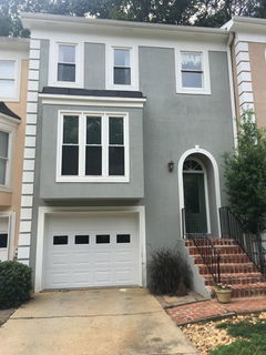 Freshly painted townhome within city limits of Duluth. Renovated kitchen and baths.Hardwood floors, new hvac, new windows..... Living room with fireplace, built in cabinets and shelves with french doors to deck overlooking woods with creek. Upstairs has 2 bedrooms each with private bath. Terrace level with bedroom and private bath with french doors to covered deck. Community offers swimming pool with low HOA fees. Gwinnett County Park across Pleasant Hill ...