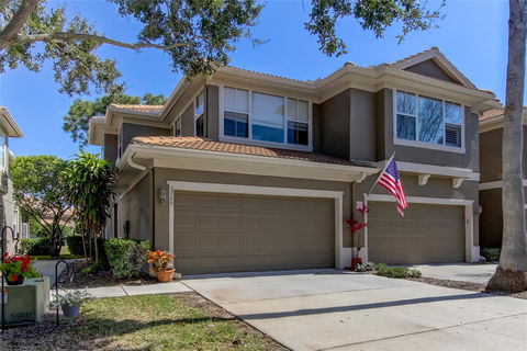 Stunning Townhome in desirable Dunedin! Located in the gated community of Covered Bridge, this end unit 3 bedroom, 2.5 bath, 2 car garage home is waiting for you! You'll love the beautiful bamboo flooring throughout and the abundant natural light. The primary bedroom is on the first floor and has sliding glass doors that lead to the screened back patio. There is a large walk-in closet and en suite bath with soaking tub, double sinks, granite counters and walk in shower with frameless glass enclosure. The kitchen is open to the dining room and great room and features granite countertops with loads of cabinet space and an eat in area. There is a large laundry room with lots of extra storage. The open, spacious great room has soaring ceilings, sliding glass doors to the screen patio with beautiful views, making it the perfect place to relax. You'll also find the 1/2 bath off the great room. On the 2nd floor, you'll find a huge bonus room with a dedicated nook that would be perfect for a workstation. You'll also find 2 large bedrooms and a bath on the 2nd level. New AC 2023. The HOA fee covers roof, building exterior, grounds maintenance, community pool, trash pickup and gated entry. You will love being just minutes from the shops and restaurants that Downtown Dunedin has to offer. The central location also offers easy access to Honeymoon Island, Dunedin Causeway, shopping malls and grocery stores. Put this townhouse on your must see list! Room Feature: Linen Closet In Bath (Primary Bedroom).