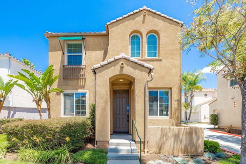 Gorgeous 3 bedroom, 2.5 bathroom, 2 story condo in the community of Teatro in El Cajon! Enjoy high ceilings, elegant tile flooring, and a private outdoor patio with a built-in barbecue. The kitchen offers a small breakfast bar, white tile countertops, white appliances, and light wood cabinetry. The primary bedroom features a walk-in closet, dual sinks in the primary bathroom, a soaking tub, and a walk-in shower. Additional property features include ceiling fans, recessed lighting, a laundry room, and a 2 car garage. Community amenities include a sparkling swimming pool, spa, and walking paths. Convenient to area markets, schools, and major freeways! Equipment: Range/Oven Topography: LL
