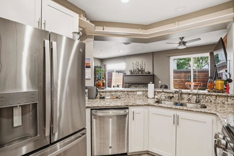 Welcome to 11382 Via Rancho San Diego #C, a beautifully upgraded 2 bed, 2.5 bath condo offering 1,258 square feet of modern living in the heart of Rancho San Diego. Every inch of this two story home has been thoughtfully enhanced and carefully maintained. The remodeled kitchen features updated cabinets, granite countertops, stainless steel appliances, and a reverse osmosis drinking system. Upgraded with a Halo whole home filtration and conditioning system, the property enjoys exceptional water quality throughout. The same granite surfaces continue through the fireplace mantle and both bathrooms, creating a seamless and high end finish throughout the home. The spacious living area showcases a custom wood accent wall, opening to a private patio. Upstairs, two ensuite bedrooms offer comfort and privacy, each with a custom built closet and fully renovated bathrooms. The primary suite is a true retreat with a dual vanity bath, walk in shower, and generous walk in closet. Additional highlights include a smart thermostat that can be controlled from your phone, recessed lighting, an updated half bath, and a full size laundry room with extra storage. The attached garage includes custom shelving, a paid off whole home water filtration system, and a water conditioning system that together provide exceptional water quality throughout the home. Located in the highly sought after Rancho San Diego community, this move in ready condo is walking distance to shopping, parks, and dining, just minutes from top rated schools, Highway 94, the airport, and San Diego’s beautiful beaches.