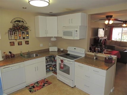 Lovely ground floor end unit town home with private covered & fenced backyard. Newer kitchen cabinets with full size closet laundry, dishwasher, stove, microwave, & refrigerator. Living & dinning area downstairs with half bath & bonus under-stairs storage. Two bedrooms upstairs with one hallway bath with bamboo floors & tub/shower. Master bedroom has a large walk-in closet with a private balcony. Complex is off a cul-de-sac with 3 parking spaces & a community pool. Home is contemporary & move-in ready. Neighborhoods: El Cajon City Center Equipment: Dryer, Range/Oven, Shed(s), Washer Other Fees: 0 Sewer: Sewer Connected Topography: LL