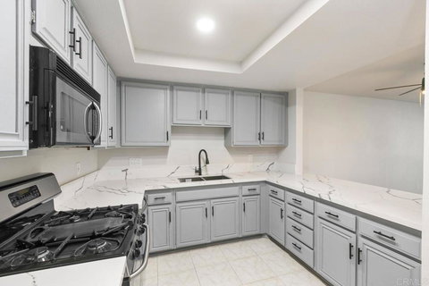 Welcome home to this centrally located, move in ready 2 story town home with a 1 car garage! This home is turn key with numerous desirable features and recent upgrades. Let's start with the location. The Valley View Townhomes are a bit of a secret in the Fletcher Hills area. This charming home is very convenient to I-8 and near to 67 and 125 so freeway access is quick and easy regardless of which direction you need to go. Mission Trails Regional Park, Mount Helix, Grossmont College, shopping, groceries, and everything you need is close by. Inside the home is tastefully upgraded and move in ready. Downstairs is a spacious Family/Great room combination with an attached dining area and pass through bar to the kitchen. The great room features durable luxury vinyl plank style flooring, fresh paint including a charming accent wall and hearth around the fireplace. There is a large sliding door out to the spacious gated front entry and courtyard. All the windows in the home have been updated both upstairs and down. The kitchen is well laid out with wonderful design and skillful use of the space. It features granite countertops with freshly painted cabinets and updated knobs and fixtures that match throughout the home. Stainless steel appliances include a brand-new dishwasher, GE oven with 4 gas burners, center griddle, gas broiler and Space saver GE microwave. The countertops are a beautiful light granite that sets off the Wedgewood color of the cabinets perfectly. There is a large dual basis side by side sink, polished black fixtures, and the owners have replaced the school fluorescent lights with contemporary canned/recessed lighting. There is a large laundry room and updated bath/power room just off the kitchen as well. The washer and dryer convey with the sale and the home accommodates a gas or electric dryer. Head upstairs and find two full bedrooms both with en-suite bathrooms. The larger room is in the front and has a balcony overlooking the street. Both bedrooms include freshly cleaned carpet. The primary bedroom has a large cedar lined walk in style closet, dual sinks and a combination tub and shower. The secondary bedroom has a single sink along with a combination tub and shower and a large wall closet with 3 sliding doors. The home includes a detached 1 car garage along with a fantastic location in the complex convenient to street parking for guests if needed and close to the pool. The home includes central heating and air conditioning. The HOA covers quite a bit at Valley View Townhomes including maintenance of the shared areas to keep everything looking clean and neat, a gated pool and jacuzzi, trash, water, and limited insurance are included as well. 304 Travelodge Drive is a move in ready two-story townhome in a terrific location and it will sell quickly. Interested parties are urged to look and make their best offer before this home is gone. Only 3 units have sold according to the MLS in Valley View Townhomes over the last 2 years and the average time on the market has been about 9 days.