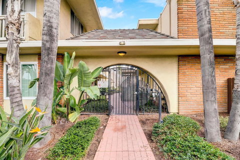 Beautiful move in ready 1st floor unit. 2 bed/ 1.5 bath condo with small backyard, located in gated community. Kitchen features tile flooring, granite countertops and stainless steel appliances. Dual pane windows, luxury vinyl plank flooring, and upgraded pull down blinds throughout the unit. Both bedrooms have walk in closets. Both bathrooms have granite countertops and tile flooring. Complex features swimming pool, hot tub, fitness center and bbq's. 1 assigned carport. HOA includes sewer, trash, water. Easy access to freeways, schools, shopping.
