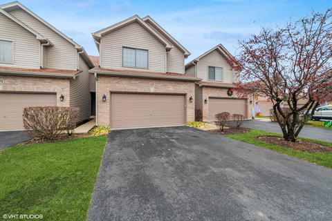 Recently renovated and meticulously maintained, this two-story townhouse offers modern comfort in a serene cul-de-sac setting, backing onto lush natural surroundings. The open floor plan features a vaulted ceiling dining room, spacious living room with fireplace, and a split staircase with modern railing. The kitchen boasts recent updates including a new backsplash, painted cabinets, and hardware. Freshly painted walls, trim, and doors throughout complement the contemporary feel. Upstairs, awaits the primary suite with a completely renovated bath and huge walk-in closet. The finished basement includes a family room with a wet bar and refrigerator, along with a full bath. Recent upgrades also include updated light fixtures, second-floor hardwood floors, and a partially renovated half-bath and basement bath. Key improvements from 2022 include a new water heater. Refrigerator, A/C and furnace 2018. Furniture is negotiable! This home offers a private oasis minutes from Rt.59, with easy access to Rt.20 and I-90. Don't miss this immaculate blend of style and tranquility!
