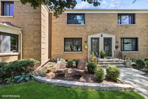 Rare find! Fully renovated and modernized, this all brick townhome is a perfect starter home or pied a terre located in desirable central Elmhurst within walking distance to shopping, Prairie Path, York High school, and Elmhurst University. All new kitchen includes white shaker cabinets, quartz countertops with dramatic waterfall breakfast bar, all new black stainless appliances, custom backsplash & can lighting. Kitchen is open to a connected dining and living space perfect for entertaining and creating family memories. Large living room has plenty of space for all your furniture and entertainment needs. Second floor boasts an oversized primary bedroom with 2 closets (one walk-in), custom window treatments and a designer ceiling fan. The 2nd bedroom has ample closet space, a designer ceiling fan, and custom window treatments. Bathroom has been updated with new vanity, mirror, and lighting. Full basement remodel includes generously sized windows, new plush carpeting, can lighting, full bathroom with slate flooring, subway tile, and custom glass shower door, a bedroom/office/playroom (no egress) with mirrored closet doors, rec or family room, enclosed laundry, and ample storage space including a generous walk-in pantry closet and additional walk-in closet with storage and mechanicals. Enjoy the outdoors with a new limestone patio behind the unit and new landscaping in front. More NEW: roof on townhouse and garage (2022), fully refinished hardwood floors and stairs (2021), HVAC (2021), windows (2021), custom window treatments (2021), all new lighting (2021), back patio & landscape updates (2022), water heater (2016). Bonus: new full-view front storm door paid and on order for install in Fall '23! One garage parking spot included, additional parking off alley - not included in sale but used by residents for years. Rental garage spots available steps away for your hobby vehicle. Don't miss this perfectly remodeled, move-in ready townhome!