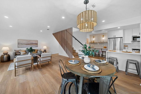 Welcome home to this freshly renovated and beautifully updated Encinitas townhome. Filled with natural light and designed for modern living, this 3-bedroom, 2.5-bathroom home has undergone a complete transformation and is sure to impress. The downstairs features an open-concept layout, with a stunning plaster fireplace as the focal point in the living room. The custom-designed kitchen shines with new cabinetry, open shelving, quartz countertops, and stainl...