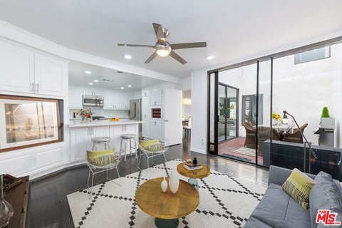 Tucked away from the street, this tastefully renovated Encino townhome offers radiant natural light and multiple outdoor spaces. A double door entry invites you to an open floor plan, 9 foot ceilings, artisan-grooved wood floors and gallery walls featuring a living room with gas fireplace, and sliding doors to a private patio. The dining area flows seamlessly to a second courtyard-style patio to dine, entertain or enjoy your morning brew; accessed by an adjacent den and powder room. The connecting gleaming white kitchen has custom painted cabinets, new Iced White Quartz countertops with breakfast bar, oversized subway tile backsplash, brushed nickel designer fixtures and hardware, GE stainless appliances and wine fridge. The upper level is comprised of 3 bedrooms and 2 full baths, new LVP oak-look flooring, a convenient laundry closet and sunlight that funnels through from the interior courtyard. The primary suite has a roomy walk-in closet, updated bath with dual sinks, new fixtures, and separate shower anchored by a relaxing deck with captivating mountain views. The 2 additional bedrooms have ample closet space and share a beautifully updated bath. Additional appointments include new HVAC, LED recessed lighting, and freshly painted interior. The community features a heated pool and spa, secured entry and gated side by side parking spaces. All this while being close to freeway access, convenient shopping, popular eateries,Trader Joe's, Gelson's, Sepulveda Dam recreation area and much more. Live your best life!
