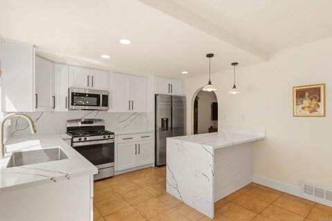 Located in the highly sought-after Felicita Villas community in the heart of Escondido, this fully remodeled 3-bedroom, 2.5-bath townhome offers one of the largest floor plans in the complex along with stylish upgrades. The updated interior features a spacious living room with a cozy fireplace and a beautifully installed wood mantel. A newly designed alcove doorway adds architectural charm while providing a seamless flow from the living room into the kitchen. The open kitchen showcases new tile flooring, abundant cabinetry, an island, and a sunny breakfast nook. A dedicated dining area and convenient indoor laundry room complete the main level. Upstairs, you’ll find three generously sized bedrooms and two full bathrooms, including a spacious primary suite with a large en-suite bath and walk-in closet. Step outside to enjoy a private backyard featuring newly installed pavers that extend the patio, creating the perfect space for outdoor dining, relaxing, or entertaining. The home also offers a charming covered porch, accessible through elegant French doors off the family room. Residents of Felicita Villas enjoy wonderful community amenities including a pool, spa, clubhouse, and barbecue area. Ideally located close to shopping, restaurants, schools, and easy access to the I-15 freeway, this beautifully updated home offers style and convenience in one of Escondido’s most desirable communities.
