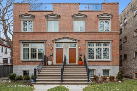 You will love coming home to this truly stunning eleven room town home that lives like a single family home! Ten foot ceilings, oak floors, tall windows, custom finishes including all window treatments (except for living room south windows) and wonderful floor plan welcome you to the first floor. Designer kitchen features huge island, white cabinets, quartz countertops, Sub Zero refrigerator, Viking range and eating area. Adjacent family room with gas fireplace, mudroom and access to the back deck and yard. The second floor features a spacious master suite including bedroom, two custom closets and luxury marble bath with double vanity, separate tub and walk in shower. Two additional bedrooms and hall bath complete the floor. On the top floor you will find the fourth bedroom, hall bath, second family room/great room and fabulous roof deck with tree top views. More finished space is in the basement with high ceilings, recreation room with wet bar, full bath and fifth bedroom currently used as an exercise room. The two car garage has been outfitted with custom storage and an electric car charger supply. Fenced backyard with plenty of room for play space and gardens. What an ideal location - just blocks to the lake, downtown Evanston, Main Street coffee shops and restaurants, both the CTA and Metra trains, and schools. It is a joy to show!