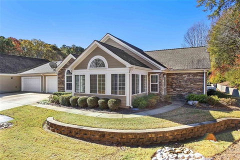 Ready to move in! Beautiful 55+ Community Condo of Villas at Gingercake, Freshly painted, Open floor plan, Ranch style 2 Bedrooms / 2 Bathrooms and a Huge sun room, Large pantry, separate laundry room with a sink, Split bedroom plan, kitchen with lots of room overlooking the family room with fireplace, Hardwoods floors in great room, kitchen, sunroom and bedrooms. Community offers ground and exterior maintenance, Clubhouse, exercise room, swimming pool. Minutes from Fayetteville downtown, Piedmont Hospital, Restaurant’s and Shopping. Don’t miss out great opportunity!