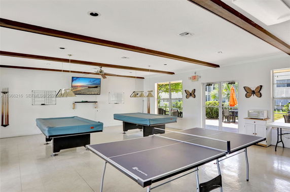 The building offers a range of amenities for residents. There are two heated pools, a clubhouse, and a gym. Other shared spaces include a billiard room, library, and community room. Outdoor areas include a barbecue space for gatherings. Residents can also find a shuffleboard court for leisure activities.