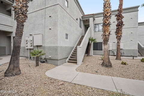 Gorgeous turn-key condo in great Fountain Hills location - CLOSE to EVERYTHING! Fully Furnished, ready to move-in, light and bright 2 bedroom, 2 bath condo with amazing views from north-facing balcony! No carpet - easy to maintain wood, wood laminate or tiled floors throughout. AC/heater new in 2020. Water heater new in 2021. Roof redone in last 3 years and exterior painted in last 18 months. NO RENTAL RESTRICTIONS! Community amenities are awesome with heated pool and spa, workout facility and clubhouse. Owners loved biking everywhere from this location. You will not be disappointed! Owners meticulously maintained this unit with new toilets, pressure regulator, & quarter turn valves in 2021. New disposal in '22, New kitchen faucet in '22 & patio door rollers in 2025. MUST SEE!!