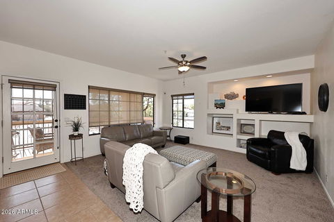 Welcome to your serene Fountain Hills retreat! This light & bright 2 bed / 2 bath end-unit second-story condo is tucked inside a tranquil community with wide open desert and mountain views plus a view of the sparkling community pool. Enjoy the convenience of a private garage and the rare opportunity to own in a community where homes seldom come available. Step out onto the spacious balcony and take in the treetops — your own nature sanctuary with true indoor/outdoor living. Just a short walk to shopping and restaurants, and minutes to all the best of Fountain Hills with quick access to Shea Blvd and SR 87 for easy travel valleywide. Well cared for and ready for you to move in and enjoy!