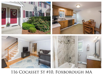 This beautiful townhouse located in Cocasset Commons in Foxboro is sure to please. Featuring a nice size kitchen with updated stainless appliances, a bright and open living room with hardwood, 2 good size bedrooms (both featuring gleaming hardwood floors),beautifully updated bathrooms and a full finished basement. Additional features include central air conditioning, clean efficient gas heat and a low condo fee which includes heat. This convenient location offers easy access to major routes, Patriot Place and Gillette Stadium. Some notice appreciated for showings !!