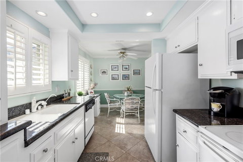 Looking for a single story home? Tired of steps and stairs? Don't miss the opportunity to own this lovely move in ready end unit condo. Kitchen has been upgraded with granite counter tops, pantry, recessed lighting, crown molding and plantation shutters. There is also a built-in desk which is perfect for those who "work from home". Living room is complete with ceiling fan, recessed lighting and cozy fireplace for those chilly evenings. You can also step out the vinyl slider and enjoy the private patio. There is plenty of room for you to BBQ or just relax after a long day's work. Bedroom has dual mirrored closets and overhead ceiling fan. There is also a vinyl slider to access the patio. Bathroom has also been upgraded with a granite counter top and there are plenty of cabinets for storage. The step in shower also has a seat and custom shower enclosure. Additional features include tile flooring throughout, scraped ceilings, air conditioning and heating, vinyl windows and sliding doors. Carport for one car is gated and also has a storage area. There is ample guest parking which is just a few steps away. Association includes water, trash and a swimming pool. You will love living in this community which is walking distance to shopping, dining and transportation. Short drive to Fullerton College, CSUF and Brea Mall. Home is also located in the award winning Troy High School district. Your next home is ready for you!!