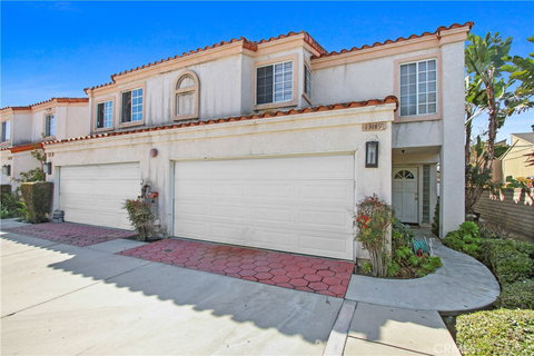 Welcome to the is charming, family friendly, Sunrise Court GATED community of 10 homes, located in the heart of Garden Grove. Very well maintained 2 story, 3 bed |2.5 bath town home. Great private location at the end with no one next to you. Spacious floor plan, featuring an ample living area with vaulted ceilings, cozy fireplace in the family room & sliding glass doors out to the private patio, new blinds. 1/2 bath located downstairs, 2 car attached garage with direct access. The property has easy access to freeways and shopping. HoA includes insurance and trash.