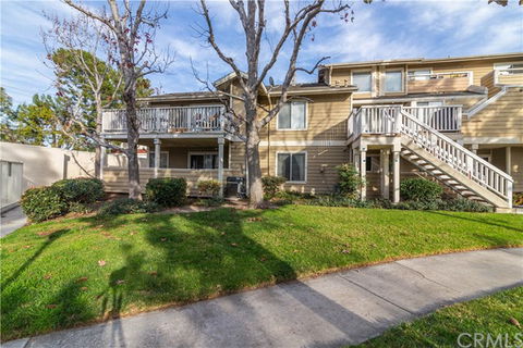 Beautiful Cape Code style 2 bedroom condo is located in desirable West Garden Grove. Condo is located in a pet friendly community with multiple greenbelts and walking paths. This is a 900 sqft 2 bedrooms, 1 bath unit with 2 separate vanity sinks and dressing area in a first floor. single level rare floor plan that offers direct access to an enclosed garage with storage area and built in storage shelves. There is a front garden area and back patio for entertaining with view of the pool and greenbelt with trees. Attached garage and separate parking space with extra storage area. Unique downstairs home surrounded by greenbelt, close to mailbox, main pool and Jacuzzi. floor plan is avert inviting and has home feeling to it where the living room, dining room, and kitchen are configured as separate rooms. Spacious living room. Bright dining area with 2 separate windows leads to bright and cozy kitchen with 2 windows and view of greenbelt. new upgraded central heat and a/c unit. The large master bedroom has double doors for entry with a big window that has a view of the pool and greenbelt with access to sink and dressing area with 2 large mirrored closets. The master now enables a full work-at-home office.