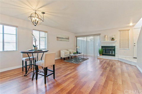 Beautiful upgraded condo centrally located in Garden Grove. Move in condition. 3 Bedrooms, 2.5 Baths, 2 Story. Gated community. The largest floor plan end unit with lots of windows, only 1 common wall. Views from all rooms. Newer interior paint, laminate floor, kitchen cabinet with newer counter tops and new stainless steel appliances, new AC unit and new window blinds. Upon entrance you are greeted with a light and bright open floor plan, which includes a spacious living room with fireplace. The dining area has a new chandelier. Upstairs has 3 bedrooms. Master bedroom has a sunny balcony with view of the community and two extra large closet spaces. This unit has tons of storage including a pantry and a storage room, washer and dryer hookup off the kitchen. Red tile roof, air conditioning and heat. 2 assigned safe gated underground parking spaces below unit. HOA fee includes community gated spa, water, trash, outside maintenance, roof and fire insurance. Close to Little Saigon, Korean Town, Disneyland, shopping malls, restaurants and freeways.