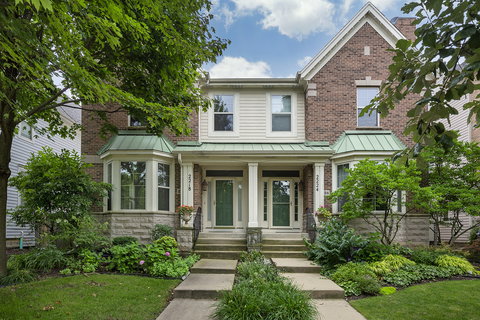 Rarely available 5 BR (4 up, 1 lower level), 3.1 BA end-unit duplex that feels like a single family home with your very own backyard and only a $50/month HOA!!! Situated in a premium location within the Glen, hand-picked by the original owner, this home is just a few blocks to 142 acre Gallery Park complete with lush grounds, lake, tennis & pickleball, downtown Metra and all of the action this fun community has to offer--mouth-watering restaurants, shops, movie theater and renown Glenview's Park Center with indoor pool, track, gyms & more! The spacious living room/2nd family room with inviting fireplace features an attractive bayed window overlooking the tranquil, tree-lined street and is adjacent to the formal dining room creating a trendy, open look. Gourmet cooks will love the XL kitchen filled with handsome 42" Cherry cabinets, all stainless steel appliances including a brand new range and oven with convenient pantry and opens to the family room with oversized windows and glass door leading the private backyard and patio. Four large bedrooms are located on the 2nd level along with a convenient full-sized laundry and newer washer and dryer; the 5th bedroom is in the lower level with a full bath/steam shower just steps away. The primary bedroom, with trayed ceilings, has two walk-in closets and a luxurious bath with jacuzzi and glass enclosed shower. Plenty of fun and play can be had in the finished basement with rec and game areas, the 5th bedroom/office/exercise room, full bath and storage galore. Come live "The Glen" lifestyle with great public schools and enjoy all the amenities this sought-after community has to offer! Freshly painted, brand new carpeting and ready to move into today! Investor owned--taxes do not reflect any exemptions.