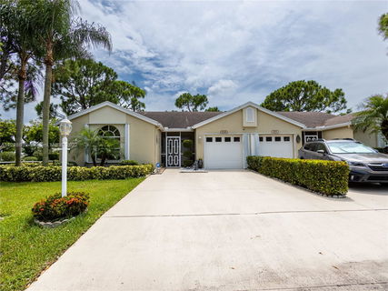 Immaculate 1 story Townhouse, 3 Bed/2 Baths, Lake view corner lot. 1 car garage and a double driveway. Ceramic tile throughout, screened porch, screened entryway, vaulted ceilings, S/S appliances, A/C replaced in 2018, water heater in 2022, water filtration system, emergency back up Generator hooked up to a breaker panel. Accordion Storm Shutters throughout including garage. Amenities include swimming pool and clubhouse. Verified 55+ Community & no one under 18 years.