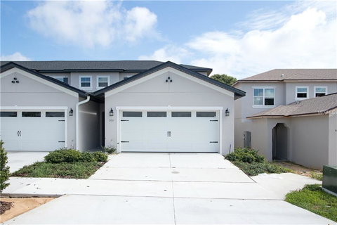 NEW, Custom Townhome, end unit, move-in ready maintenance-free overlooking the Green Valley Golf Course. Features include 3 bedrooms, 2.5 bathrooms, master on the first floor with fourth bonus room. Front entry gate and security camera, screened lanai with enclosure door, two-car attached garage, granite counters, well-appointed kitchen and more! Spacious and open floor plan with breakfast bar or counter and dining nook. Open to the family room. Large laundry and powder bath. Upstairs guest bedrooms with ample closets, loft and bathroom. Additional room does not have a closet. Convenient location near highway 27, minutes to the local attractions and shopping and dining nearby. Groveland is experiencing tremendous growth. Don’t miss this very special opportunity! Call today or stop by the model home and explore your options for quick move-in or view plans to build your own!