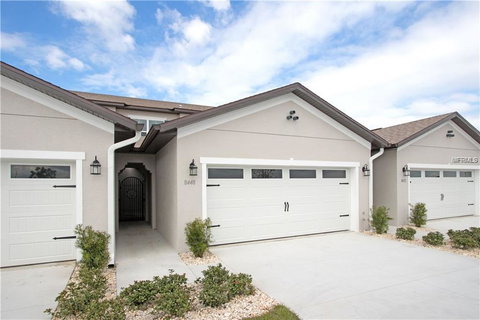 Pre-construction. To be built - This brand new high-end townhome is located in a maintenance-free community overlooking the Green Valley Golf Course. Standard features include a front courtyard with private gated access, attached two-car garage, a screened in lanai, granite counters throughout and much more. You will find plenty of room in this open concept floor plan which includes: 3 bedrooms and 2.5 bathrooms with the master on the first floor. Additionally, the first level includes garage access, as well as spacious laundry and powder rooms. Two bedrooms, a full bath and generous bonus room complete the second level. Convenient location off of Highway 50, less than 10 min drive from Downtown Clermont and just minutes to the local attractions, shopping and nearby dining. Easy access to Highway 27 and Florida's Turnpike. Groveland is experiencing tremendous growth. Don’t miss this very special opportunity! Call today or stop by the model home and explore your options for quick move-in or view plans to build your own! Photos are of a similar/model unit as this home is under construction.