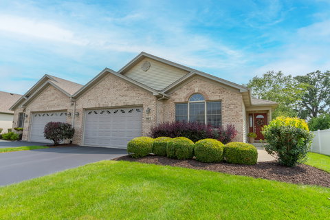 Rare 3 bedroom ranch duplex in desirable Hampshire Highlands~ nothing to do but move in. The inviting foyer opens to a spacious great room with vaulted ceilings, an abundance of natural lighting, and a brick fireplace. The kitchen boasts 42 inch cabinets with crown molding, vaulted ceiling, stainless steel appliances, double ovens (top oven is a convection oven), island with pendant lighting, breakfast bar, and an eat-in area. First floor office would be great for working from home. Convenient main level laundry with laundry sink and cabinets for storage. The generous sized primary bedroom includes vaulted ceilings and an en-suite bath with dual vanities, whirlpool tub, and a separate shower. A second bedroom with vaulted ceilings and a full bath complete the main level. The finished basement adds even more living space with a family room, third bedroom, full bath, and huge storage area. Outside, you can relax in your screened in porch or on the deck overlooking the private yard that backs to protected Oak Savanna. Located near parks, restaurants, schools, and easy interstate access. Make this your dream home today!