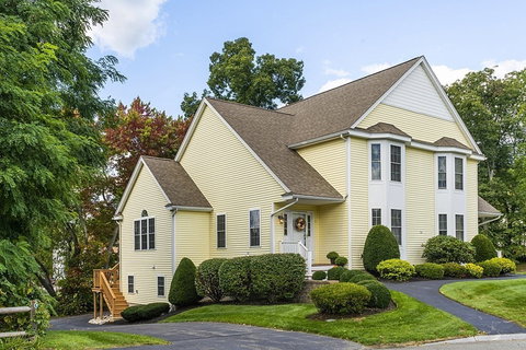 Welcome home to this impeccable 3 bedroom townhouse in a private neighborhood setting, situated at the end of a cul-de-sac. The sunny 2 story entrance with hardwood floors and beautiful wainscoting greets you with warmth and character! First floor master bedroom features private 3/4 bath and custom-design walk-in closet. Open concept living room with soaring ceilings and corner fireplace is a perfect flow to the kitchen with bump-out window, granite countertops, island, new appliances and pantry closet. The main living area also includes sliders to private deck, 1/2 bath and laundry. The 2nd floor balcony invites you to 2 more spacious bedrooms, full bath and large linen closet. Finished room in basement can be used as office, family room or 4th bedroom and offers a nice size closet and 2 full size windows. Other bonuses are central air, garage, extra storage room and rough plumb for central vac. Excellent commuter location close to shopping and highways. Just move in and enjoy!