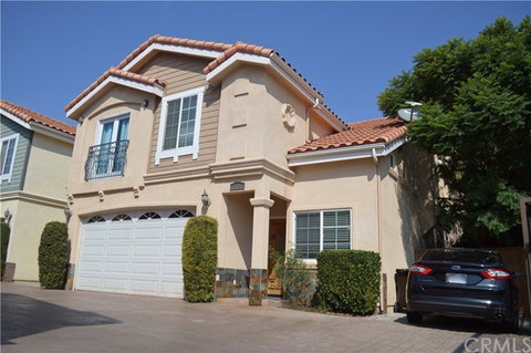 Check out this beautiful home in a private gated community of Cordary Gardens. Gorgeous open floor plan with many upgrades. Lots of natural light with vaulted ceilings. Living room and dining area with fireplace. Travertine tile flooring on first floor and new upgraded quality flooring on stair way and in all bedrooms upstairs. Granite countertops on kitchen counters and both counters in restrooms. All 4 bedrooms located upstairs including large master suite bedroom, bath includes shower and seperate whirlpool tub. Washer/Dryer hookups conveniently located upstairs. Private fence yard and security gate entry. Two car garage and additional 3 parking spaces. This home is also minutes away from LAX, new Rams football stadium complex, beach and shopping. Low HOA! Come and see it!