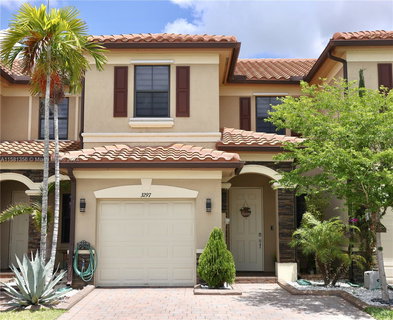 Live in your own paradise in this beautiful contemporary 3 bedrooms, 2.5 bathrooms townhome in the desirable gated community of Aragon, situated in a dead-end street. Walk into a relaxed atmosphere that invites you to enjoy. Open floor plan, high ceilings and zebra shades. Spacious kitchen w/ granite countertop and SS appliances. Tile on first floor, laminate upstairs. Bedrooms offer a peaceful retreat, w/ the principal suite boasting a walk-in closet and end-suite bathroom. Private patio perfect for entertaining. 1 car garage, 2 parking spaces and lots of guest parking across the street. Resort style community w/ pool, gym, clubhouse and playgrounds. Great location near park, restaurants, schools, 3 major x-ways, strip malls, supermarket. Washer and dryer in unit. Low HOA fee.