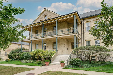 Experience the allure of this stunning second-floor Cavalry Barracks condo in the highly sought-after Fort Sheridan area, where the train, beach, and town are all just a short walk away. The open and expansive floor plan is perfect for both daily living and entertaining guests. Features include rich hardwood floors, a neutral color scheme throughout, abundant natural light, and distinctive historical character. The family/living room opens to a large balcony through glass doors, while the spacious dining room boasts a dramatic 22-foot ceiling, exposed beams, and a striking floor-to-ceiling custom stone fireplace. The adjacent kitchen is beautifully appointed with white cabinetry, granite countertops, and a breakfast bar. The primary suite includes a large bathroom with dual vanity/shower/tub, two walk-in closets, and two additional closets. There are also two guest bedrooms, a full bath, a powder room, and a versatile loft area ideal for a home office or family room. Additional room adjacent to the loft can be finished off with board approval. Enjoy added amenities such as a two-car garage, a storage unit, scenic walking paths, refreshing lake breezes, and meticulously landscaped grounds. Fort Sheridan is a unique community nestled among Lake Michigan and ravines, setting it apart from any other suburb in Chicago. Whether you're looking for outdoor activities and nature or prefer easy access to the Metra for commuting and the vibrant restaurants and festivals in Highwood, living in The Fort offers you of all that and more!