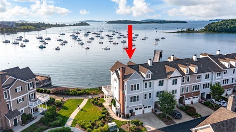 One of the largest and nicest WATERFRONT units at the shipyard! You will be amazed by the NATURAL light and VIEWS. COVETED end unit w/full wrap around deck to enjoy the harbor activity and BOSTON Skyline. Three floors of beautiful living space, all with views! The first floor has a gracious foyer (w/ELEVATOR to upper floors), a half bath and Den/Office which could also be a 3rd bedroom. The main floor offers a beautiful white kitchen w/large breakfast bar that seats 4, GE appliances and pantry, OPEN to a dining area and family room with a wall of WINDOWS and access to the fabulous deck. This floor also offers a second living room with fireplace and a bonus space which could be a formal dining room or sitting room. Upstairs there are 2 spacious en suite bedrooms inc. a gorgeous master suite w/fabulous walk in closet and spectacular VIEWS. This unit is IDEALLY positioned in the complex w/ Southern exposure, close proximity to the clubhouse and easy access to Bouve conservation area!