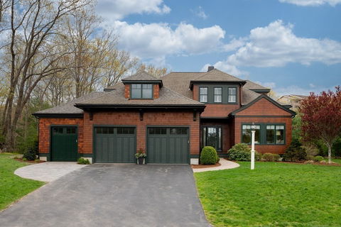 IMPRESSIVE is an understatement! This newly renovated home offers exceptional interior design, open floor plan and an abundance of natural light. The stunning La Cornue Stove and custom hood are the centerpiece of the state of the art kitchen. The featured custom built ins throughout this home are exquisite. The study on the first floor offers stunning views of the 14th fairway, man made pond and natural rock outcroppings. The primary bed with new master bath and closet systems complete the first floor along with a custom pantry and laundry The enlarged deck with new staircase leads to a private backyard that has a magnificent blue stone patio with a custom built-in firepit and striking landscaping. This outdoor area leads to a finished lower level walkout with a unique bar area for ease of entertaining, media room and finished space for a screened room. The second floor has an additional bed, full bath and second floor office along with two cozy niches for potential living space