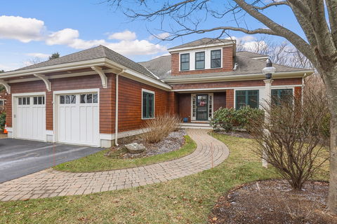 Located within Hingham's Residences at Black Rock, 43 Clubhouse Drive is a turn-key, impeccably maintained option for those seeking privacy and space in a country club setting. First floor features an open concept kitchen, living and dining space, marble kitchen island, Thermador appliances, wine fridge, gas fireplace, cathedral ceilings, two first floor, ensuite bedrooms, steam shower, powder bath, home office or study, oversized mudroom, ample natural light and golf course views. Second floor features two bedrooms, full bathroom and ample closet / storage space. Finished walk-out, lower level features a gas fireplace, wet bar, dining nook, fitness space, storage and option for a bonus bedroom. Exterior hardscape features a large mahogany deck, bluestone patio with built-in firepit and playground.