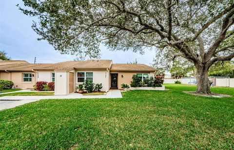 One look and you will be SOLD when you tour this end unit home at Holiday Lake Villas and Condominiums. This 1560 square foot unit is most likely the BEST unit within the complex! This 55+ community is minutes from downtown Tarpon Springs, the Sponge Docks, Fred Howard Park and Sunset Beach. Remodeled and Move in Ready!!Fresh designer colors, remodeled gourmet kitchen includes new flat burner range, newer refrigerator, dishwasher and microwave. New plumbing and electrical in January 2024. Plenty of cabinet space, huge granite peninsula and pantry. The Open Concept Living/Dining/Kitchen/Sunroom is light and bright! Light color tile floors, wide baseboards and smooth ceiling, all the work has been done in this home, just move in! The sunroom is bright, open, has honeycomb blinds and hurricane windows, great for entertaining. The primary bedroom has a walk-in closet with custom designed storage. The second bedroom has also been redesigned for maximized space. There are additional closets throughout this home. The Primary ensuite has a shower, large vanity with two sinks and a linen closet. The second bath has a combination tub/shower, large vanity and another linen closet. There is a separate closet with a new full-sized washer and dryer. AC and Hot water tank replaced in 2019, carport is new and built to new 2021 Pasco County Codes. The monthly condo fee includes water, sewer, trash, basic cable, DVR, internet, exterior liability insurance, lawn and pest control. Exterior was painted in December 2023. There is also a private community heated pool, active club house with full kitchen, library, pool table and more. This home will not last, so check it out before it is GONE!!