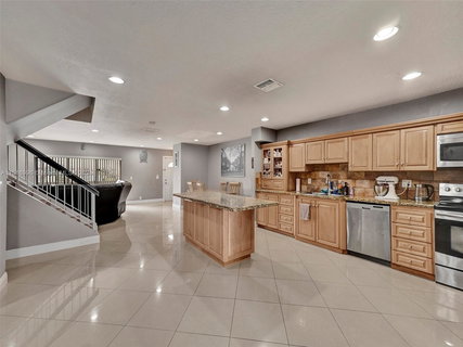 Spacious four-bedroom, corner unit town home in the heart of Hollywood Hills. First floor offers large open floor plan w/porcelain tile throughout. A spacious kitchen contains wood cabinets w/ample storage, granite countertops, a sizable island with seating, & stainless steel appliances. Beyond the kitchen sits a sizable walk-in laundry/utility room. The home also boasts a formal living room & extra-large family room. Outside, 2 patios, provide additional outdoor living space. Back patio opens to common area yard via high privacy fence w/ gate access. Upstairs, has multiple closets for ample storage, a generously proportioned master bedroom w/ upgraded ensuite bathroom & plantation shutters. This home has wonderful natural light and is ready for your family! Shops & restaurants nearby.