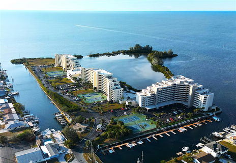 OWN YOUR OWN PRIVATE BOAT SLIP ON THE OPEN GULF OF MEXICO! This waterfront resort style 7th floor maintenance free condo with your own PRIVATE oversized COVERED parking space and YOUR OWN boat slip with water and electric. Please watch video. This mesmerizing gem with 24/7 manned gated security is perfect for you to feel safe and enjoy full time for yourself or share with family, friends and seasonal rentals with a BONUS room. Everyone will enjoy all the additional amenities featuring private fenced Olympic sized heated pool, nature trail, private sandy beach, playground, shuffleboard, tennis, pickleball courts, recreation center/dance floor w/activity room, game rooms, waterfront fitness center along with private lagoon for fishing, grilling, watching the dolphins, manatees, turtles, birds and so much more! This light and bright freshly painted interior flows beautifully with an open and airy floor plan with stunning sparkling water views throughout. You will appreciate the open large kitchen with new refrigerator, sink, faucet, valves, microwave along with gorgeous quartz countertops/breakfast bar for eating and entertaining. The bathroom is updated with new toilet, sink, faucet, valves and new fan vented outside. There is an additional room available to make a 2nd bedroom, office or den to fit your own personal needs. Vented washer & dryer in unit for your convenience. The Community monthly fee includes all amenities and utilities except electricity. Milestone Inspection has been completed and building passed. This waterfront community has many close by local restaurants and casual tiki bars that are easily accessible by boat and/or your golf cart which makes it even more fun in the sun! Just around the corner, you will enjoy Hudson Beach, SunWest Beach Park, 3 local marinas, public boat ramp, shopping, library, hospitals, etc. I75 and Suncoast Veterans Parkway make it convenient to access the Tampa and St Pete/Clearwater Airports and all the Professional Sports and Special Events in St. Pete and Tampa Bay. This is a very special and dreamlike lifestyle for you to enjoy! Come check it out!