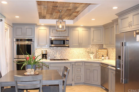 ***MUST SEE, DON'T MISS THIS OPPORTUNITY***. This immaculate 3 bed 2 bath single story with a two car garage home is located in the private gated community The Gables of Huntington Beach. This elegantly remodeled home boasts quality craftsmanship and is loaded with so many sought after features that I cannot list them all. Some favorites are: The kitchen upgrades, Birch cabinets w/soft close and pull out drawers, new dual oven, quartz countertop, pull out island, refrigerator included. There is travertine floor in main living area, one bedroom, and engineer flooring in two bedrooms. The open floor plan is crisp with a cozy fireplace, custom mantle and recessed lighting throughout. Remodeled bathrooms and a spacious master bedroom. Whole house plumbing repipe was completed about three years ago, with the addition of a tankless water heater/furnace that was moved to attic to create more cabinet space. New central heating and air, new ducting, vaulted ceilings, custom cabinets in laundry, spacious private patio and so much more. This family friendly community is perfect with plenty of common area for BBQ, swimming, spa, green belt, and plenty parking for your guests. All of this and within two miles of the sands of Bolsa Chica. I truly cannot say enough about this house, schedule your appointment today!