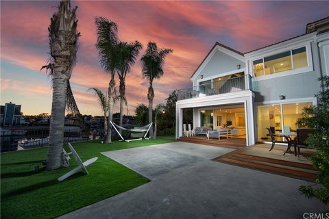 Spectacular Main Channel and Catalina Views from every level of this rare front row Seagate residence built 6 years ago. Arguably one of the best locations in Huntington Harbour, this exceptional property accommodates one of the only several, 50-foot docks (16 feet wide) available in Seagate. The home is nearly 3100 SF on a huge 4220 SF lot. This highly sought-after end unit hosts 2 main-level bedrooms, the main and 2 secondary bedrooms upstairs, and 5 full baths, a half bath and extra Loo in the master. Low-maintenance wood floors spans across both levels and accordion slider doors frame the view of the oversized waterfront deck both downstairs and from the main bedroom. The spacious kitchen offers blue water views and is equipped with quartz countertops, stainless appliances, sit in counter eating leading to a fabulous waterfront dining room. Recessed lighting in the entire house and 2 fireplaces in living room and master keep it warm and cozy in the winter. The first floor living area is open and inviting and perfect for entertaining. The main bedroom enjoys a large balcony with expansive views, dual vanity sinks, a frameless glass door shower, and quartz countertops. All other bedrooms offer en suite baths with high end finishes. Additional features include a dual air