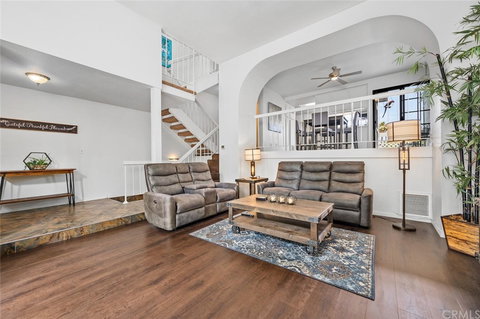 This Huntington Harbour area Tri-Level home really delivers! Situated in the peaceful & quaint Community of 21 units known as “Huntington Terrace”. Convenient to Coastal Wetland hiking trails & wildlife observation points of interest, Local State and City beaches, Main Street Huntington & Seal Beach shopping restaurants and entertainment venues. Association amenities include heated pool/spa, clubhouse for parties and gatherings, private gated park area for kids and pets to play and exercise, onsite parking for guests. Interior home features include a bright and open floor plan, vaulted ceilings, new forced air heating, inside laundry room. The mid-level kitchen & dining area overlooks the living room creating a sense of openness when entering the home and also has its own very private balcony. The Master Bedroom is very spacious with vaulted ceilings, gas fireplace, walk-in closet and an outside balcony overlooking lush trees and pool area. The Master Bath offers a jetted soaking bathtub with separate shower, dual sinks and makeup vanity. Other interior features include spacious living room with gas fireplace, recently installed wood laminate & tile flooring and smooth ceilings. Exterior features include a nicely landscaped and very private spacious front courtyard patio which is perfect for relaxing or outdoor entertaining. This home also features hard to find 2-car garage with automatic rollup garage doors. Now is the time to take advantage of this tremendous value for the area in a convenient location situated in one of Orange County’s most highly desirable communities.