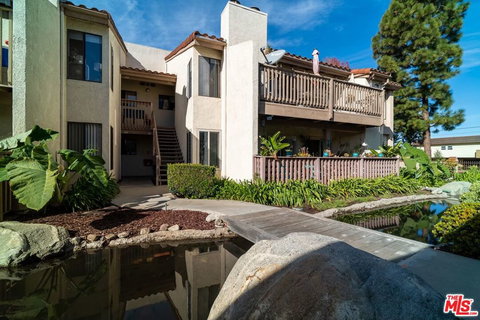 Welcome to one of the most desirable gated communities near Bolsa Chica Beach, Harbour Vista! As you stroll across the pond, this move in ready FIRST FLOOR end unit home offers 1,272 of expansive living space with an open concept living and dining room. Enjoy your mornings on one of two private balconies overlooking your pond bursting with fish, ducks, turtles and more! This oasis features 3 bedrooms and 2 bathrooms surrounded by lush mature landscaping and winding creeks. With tranquility serene creeks you may never leave your little piece of heaven.Spacious and sparkling, the updated kitchen showcases, handsome cabinetry, gas range/oven, dishwasher, multiple balconies, gas fireplace, plenty of storage space and an exclusive laundry room. Sale includes the high end luxury washer and dryer will stay with the unit. A custom unit in the dining room can be complimented as a bar, china storage and more!The primary bedroom features a full bathroom, boasting dual vanity, a walk in closet, and an additional patio door with direct access to the covered patio. Walk down the hallway to enter the two junior bedrooms featuring mirrored sliding door closets and one has a sliding glass door with direct access to the covered patio.HOA amenities include a pool, spa, clubhouse, basketball court, barbecue, and offers a one car detached garage plus an assigned parking space. Prime location just minutes from Bolsa Chica State Beach, Meadowlark Golf Club, Bella Terra Mall, Trader Joes, and much more! Harbour Vista is a leased land community. Lease expires 2041: HOA:$581 Land Lease $280 month
