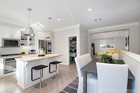 SHOWS LIKE A MODEL! Over $100,000 in upgrades! This immaculate 4 bedroom, 3 1/2 bath home is only 1.5 miles to the beach and looks like no one has lived in it. The open floor plan has 9' ceilings, 1 bed/1 bath on 1st level and includes state of the art technology: Samsung "SMART" Refrigerator, "Nest Thermostat", "Ring Door Bell", Keyless Entry, Wifi controlled garage door, whole house water filtration, Reverse Osmosis, quartz countertops, shaker style cabinets, pendant & under cabinet lighting, soft close drawers, farmhouse style sink, pull down faucet, stainless appliances, easy care laminate wood flooring, recessed LED lights, crown molding and roman blinds, all throughout. Epoxy garage floor, built in speakers, Merola tile (stainless steel over ceramic mosaic tile) in Master Shower and 2 Bidet toilets. Other features include double paned windows, walk in closets, pull out recycle/trash bin, an enormous walk in pantry, tankless water heater (never run out of hot water), laundry room upstairs w builtins, large tiled balcony off Kitchen and a front patio with sprinklers. Walk to shopping and restaurants. The HOA dues include water and trash. No Mello Roos.