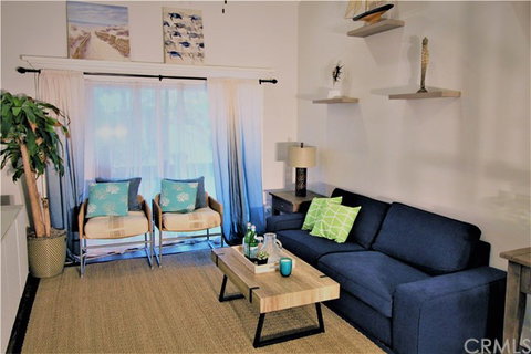 Welcome to Sunset Beach! This Coastal Modern condo is just steps to the beach. The condo was extensively remodeled in 2016 with 50K in upgrades. True gourmet eat-in kitchen with LG 5 burner gas stove and oven, large LG refrigerator, white quartz counters. Plenty of cabinets with pull-outs and large pot and pan drawers. Integrated under counter water filter system. Light and beach air fills this condo as you enter the large estate size master bedroom. 2 Custom 8ft glass closet doors with built-in storage shelving, ceiling fan and balcony. Spacious living room with 15ft vaulted ceiling, built in TV console and ceiling fan. Second floor loft bedroom with views of city lights and surrounding community. Walk-in closet and room for kid’s desk. Balcony off living room with greenbelt views, great outdoor space for relaxing morning or night. Bathroom offers tub/shower combo, vanity and tile floors. Many custom features will make this beach condo feel like your private getaway or family home. This property is also currently a turnkey monthly rental. Walk to nearby restaurants, rent surfboards or paddle boards and of course steps to the beach with this conveniently located property.