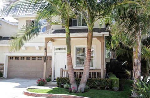 This beautifully upgraded, bright and sunny contemporary styled end unit is located in a private enclave of 8 homes. With brand new wood flooring, custom paint, ceiling fans, louvered shutters, this is just like a new home. An inviting and trend setting living room leads to a super modernized kitchen with white cabinets, stainless steel appliances, granite counters and a family dining area that opens through dual silhouette shaded doors to a charming and private patio for fun entertaining or quiet relaxation. The large, spacious & welcoming master suite and luxurious bathroom and over sized walk-in closet all add to the comfort. In addition there are two really good sized secondary bedrooms, (one would make a great office), and a lovely tile stone bathroom; upstairs has new wood floors also. Although a town home, this property is like a single family, as the only portion of common wall is in the master closet! Located 2 blocks to Main Street, & close to a Trader Joe's & Sea Cliff Shopping Center, this home is but a short car or bike ride to all the activity, restaurants & shops along Main, the sandy beaches, ocean and surf at the Pier, and the glamour of the new Pacific City development, not far to the freeways either. So all in all an exceptional find.