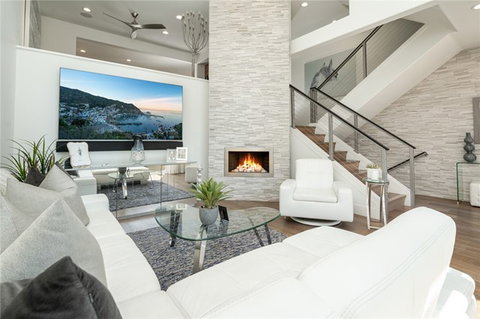 Relish in an incredible coastal lifestyle behind the gates of the highly sought-after beachside community of Surfcrest. Thoughtfully crafted, this exceptional tri-level offering presents a rare opportunity to live moments from the sand in an up-to-the-minute residence with an array of designer upgrades. Adorned with wood flooring, the main level impresses with it's vast high ceilings, recessed lighting, pendant lights, and stacked stone fireplace. The expansive living and dining spaces flow out to the gourmet kitchen, equipped with top-of-the-line stainless steel appliances, a waterfall quartz kitchen island, and white custom cabinetry. An idyllic setting for entertaining, the attached patio on the main level brings in an abundance of light into the open-plan, contemporary interiors. A metal horizontal railing staircase rises to the third floor, where an office nook between the levels makes the perfect work station. Offering blue water views, the spacious primary suite occupies the third level and hosts a marvelous stacked stone fireplace, oversized walk-in closet, dual vanity sinks, and a large, frameless glass door shower fitted with custom tile. The bottom floor hosts a two-car garage, cabinet space, and laundry area. The home has 5 flat screen TV's with a custom audio system including a Sonos System. The Main Shower has a steam system. All furnishings are custom made for house and this house is available furnished or unfurnished. Residents of Surfcrest enjoy various resort-style amenities including a large pool and spa. Live just moments from award-winning schools, top-tier dining within Pacific City and Main Street, and Dog Beach and a 7 minute stroll to the Beach. Finally, this is the only building in the community with ocean views and no other condos or structures in front or in back. Just an open feeling all around.