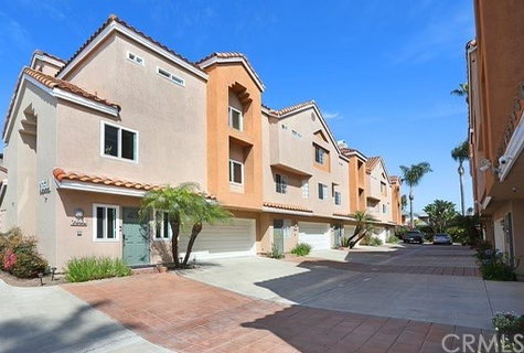 Unique Mediterranean-style townhome located just minutes away from the beach! Front-end unit with an open floor plan. Remodeled kitchen that includes granite countertops and stainless appliances, wooden flooring in kitchen and dining area. Newer dual pane windows and wooden blinds. Gas log fireplace in the living room, with carpet throughout all living areas and bedrooms. 2 Master Suites, vaulted and full bath attached to each bedroom. The half bathroom is adjacent to the kitchen, dining, and living room. Private rooftop deck on 4th level, perfect for entertaining, sunbathing, relaxing, and BBQ, fireworks with special events and airshows. Wood-fenced patio and garden area on the ground floor. Separate laundry adjacent to the garage with both electric and gas hookups. Large, 2 car garage with plenty of area for storage. A private outdoor staircase leads from the garage and patio to rear entries at all levels and up to the rooftop deck. This is a one-of-a-kind townhome with close access to the freeway, beaches, shopping, schools, and entertainment. Enjoy the resort living in Huntington Beach....