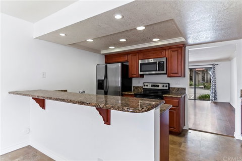 Great location! Walk everywhere. Located in Las Brisas at Huntington Beach gated community that is adjacent to a family park (with basketball court, playground, and walking path) and about .5 miles from the beach, shops, restaurants, and much more, this first-floor turnkey home features 2 bedrooms, 1 bathroom, a private backyard, inside laundry area with washer and dryer included, open kitchen with breakfast bar seating, granite countertops, built-in cabinets, closet shelving, 2 car spaces (1 with covered parking with storage space and 1 assigned parking in front of unit), and access to community pool, spa, and BBQ area.