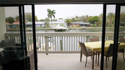 Stunning 3/2/1 townhome on the water in desirable Indian Rocks Beach. Over 1750 sq ft of living space and stunning views from your large balcony overlooking the beautiful Intercoastal Waterway. You'll have more free time to enjoy the island lifestyle as the HOA takes care of all the exterior features of this 12 unit complex complete with large pool. The home has just undergone a complete renovation including a redesigned kitchen with courtz counter tops, real wood cabinets and new appliances. All the popcorn ceilings have been removed and textured. Waterproof vinyl flooring has been installed downstairs. The newer sliding glass doors open up to the large open balcony overlooking the docks and waterfront. AC is also newer along with the water heater. First floor also has 10x13 bedroom with plantation shutters. The upstairs has 2 large bedrooms and full bathrooms that have been updated as well. This home has ample storage space on both floors. The laundry room is located on the first floor. You and your guest have reserved parking for THREE vehicles under the building. The complex has recently replaced the roof, painted the exterior and upgraded the pool, with driveways to be resurfaced shortly. This unit is an ideal rental investment for short term and long term rentals! It's not too often waterfront homes of this size within a short walking distance to the beach become available at this affordable price. Call today for your tour of not only this townhome but of Indian Rocks Beach itself!