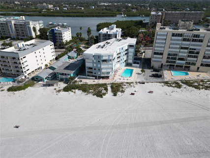 A rare opportunity to own a direct beachfront condo in the desirable Las Olas community! Welcome to 19500 Gulf Blvd, a beautifully maintained 2-bedroom, 2-bath residence offering breathtaking Gulf, beach, and pool views. This turnkey unit is being sold fully furnished, making it ideal as a primary residence, vacation home, or investment property. The open-concept floor plan is filled with natural light and showcases spectacular coastal views upon entry. The kitchen features updated cabinetry, granite countertops, dual stainless-steel sink, and two windows that enhance the bright and airy feel. Adjacent to the kitchen is a welcoming dining area, perfect for entertaining. The spacious living room opens to a generous beachfront balcony through sliding glass doors, creating a seamless indoor-outdoor living experience. Enjoy soothing Gulf breezes, gently lapping waves, and stunning sunset skies—an ideal setting for relaxing or hosting guests. The primary suite offers a private retreat with an en suite bathroom and a large walk-in closet. The well-sized guest bedroom also features a walk-in closet and private access to the guest bathroom, providing comfort and convenience for visitors. Additional features include an inside laundry room, balcony hurricane shutters, and updated windows throughout. The Las Olas community is well maintained and offers a beachfront pool with expansive sun deck and umbrellas, direct beach access, clubhouse with full kitchen, and a BBQ area. Enjoy a prime location within walking distance to restaurants, bars, coffee shops, shopping, and putt-putt golf. This unit includes an assigned parking space, along with ample guest parking. Tampa International Airport and St. Pete–Clearwater International Airport are both under an hour away, making travel effortless. This exceptional beachfront condo is truly move-in ready. Don’t miss your opportunity to own a piece of Gulf-front paradise!